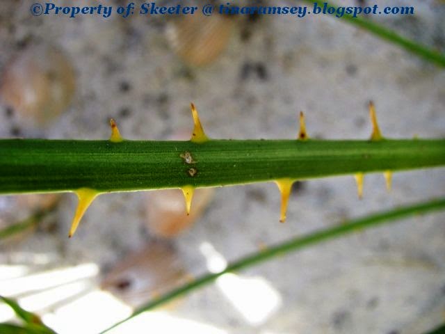 In the process, I was bit many times by the Palm as it is covered with sharp Thorns! Had I known this thing would have produced thorns, I would have thought twice about making this purchase as I do not like anything that bites back. Na, I would have more then likely made the purchase anyway knowing about the thorns as I needed a Palm in my Beach Planter. I do believe in time the Palm will shine once again after the BEACH PLANTER ICE DAMAGE, In the Garden...